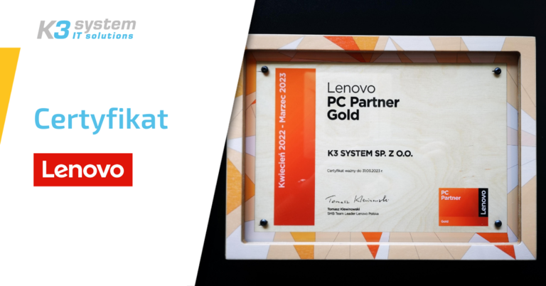 K3System utrzymuje status GOLD Partnera Lenovo i otrzymuje kolejne certyfkaty potwierdzające aktualną wiedzę zespołu.