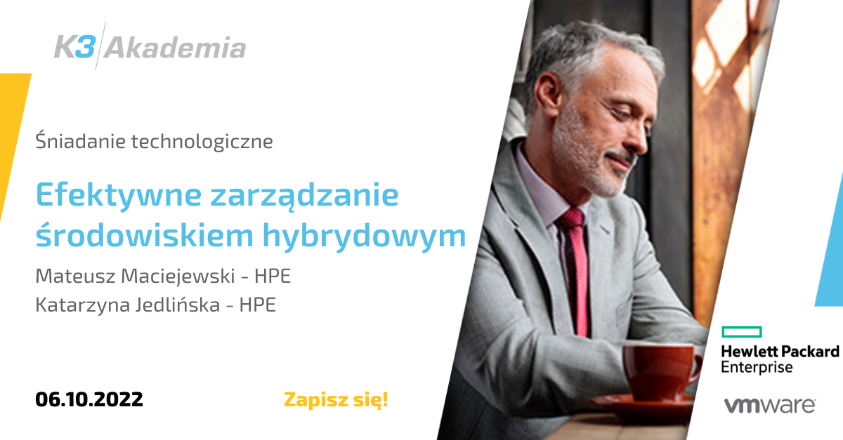 Bez obaw przenieś swoją cyfrową transformację na wyższy poziom. Porozmawiaj na żywo z ekspertami HPE, VMware i K3System.
